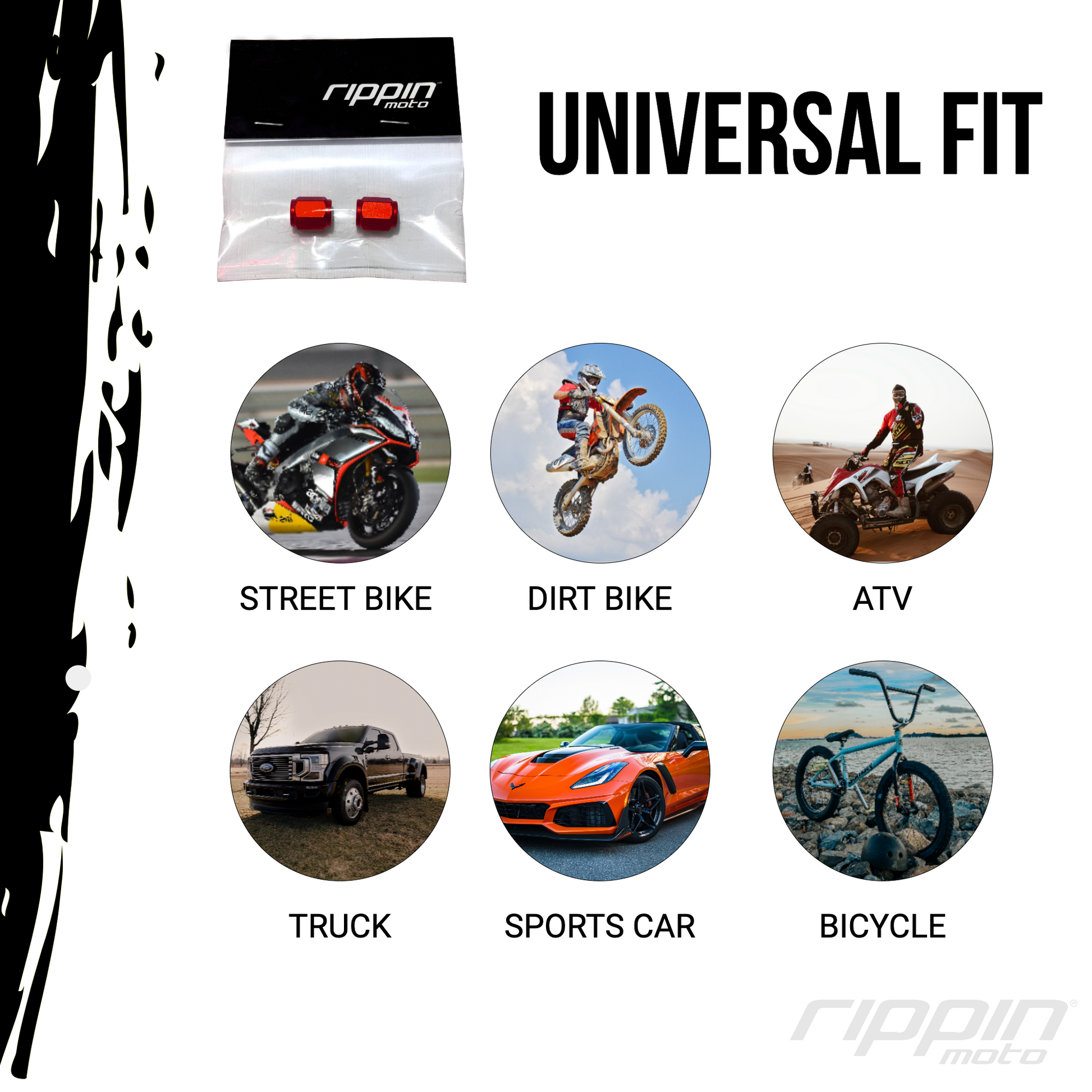 - Fit: Universal Schrader valve (motorcycles, cars, ATVs, bikes, trucks)