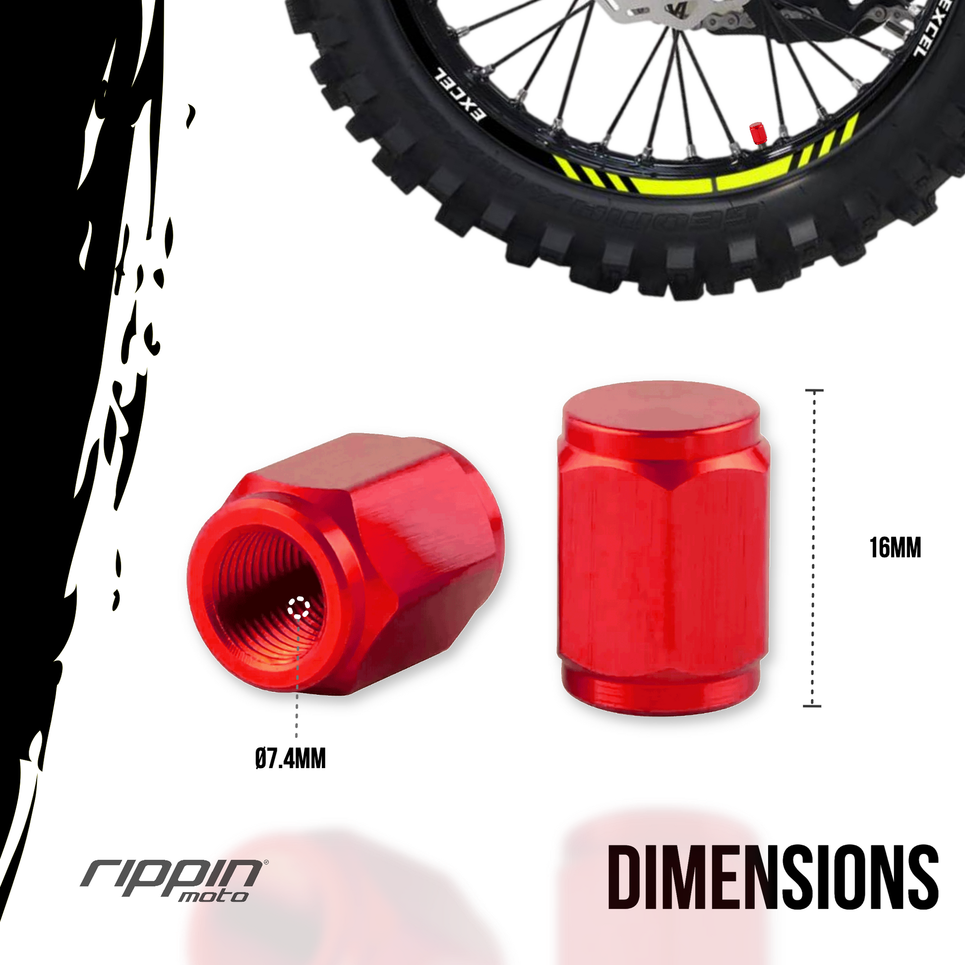 Give your wheels a custom touch with Rippin Moto's CNC-machined valve stem caps. Made from lightweight 6061-T6 aluminum and finished in vibrant anodized colors, these caps add style and protection to any vehicle running Schrader valves—motorcycles, cars, ATVs, bikes, and more.