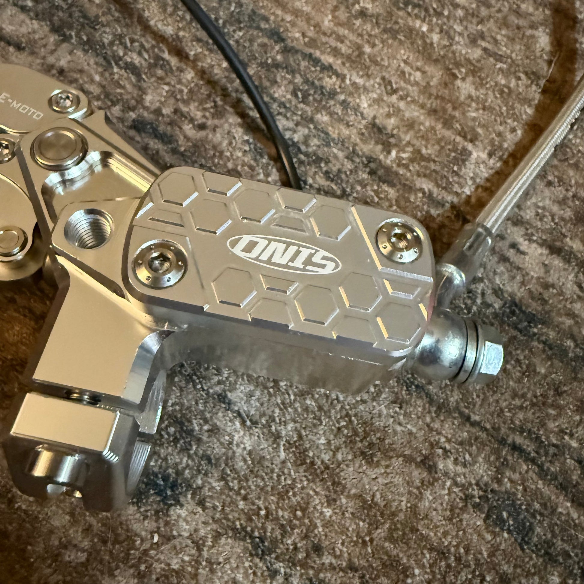This moto brake comes completely assembled and pre-bled. Included is everything you need including a mount with a rotor guard, a caliper, a braided steel hose, a unique master cylinder, two levers (medium and long), and a 240mm rotor that is 3mm thick!