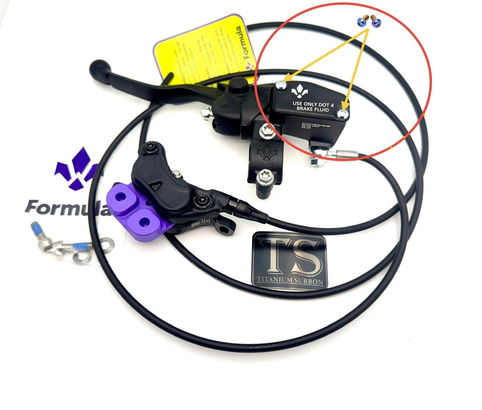 Custom titanium bolts for Formula brake reservoir. Sold as 2 or 4 pieces.