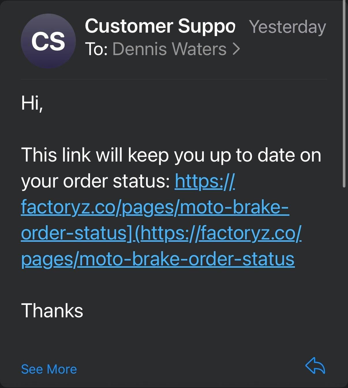 REAR BRAKES ARE SET TO SHIP IN DECEMBER