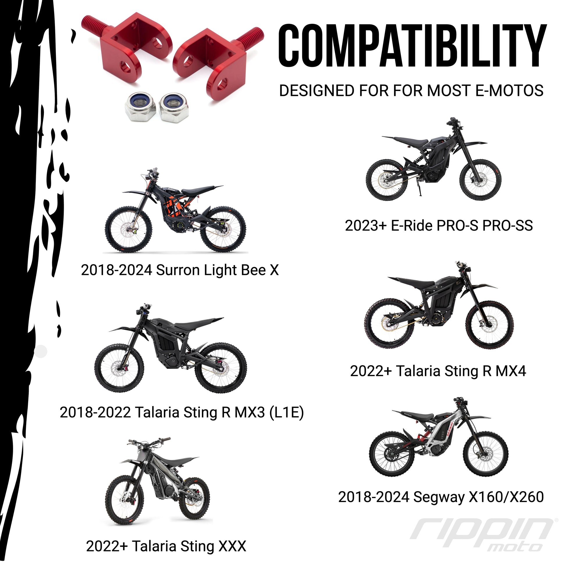- Compatibility: Segway X160, Segway X260, Sur-Ron Light Bee, Talaria Sting, Talaria XXX, E-Ride PRO SS, E-Ride PRO S