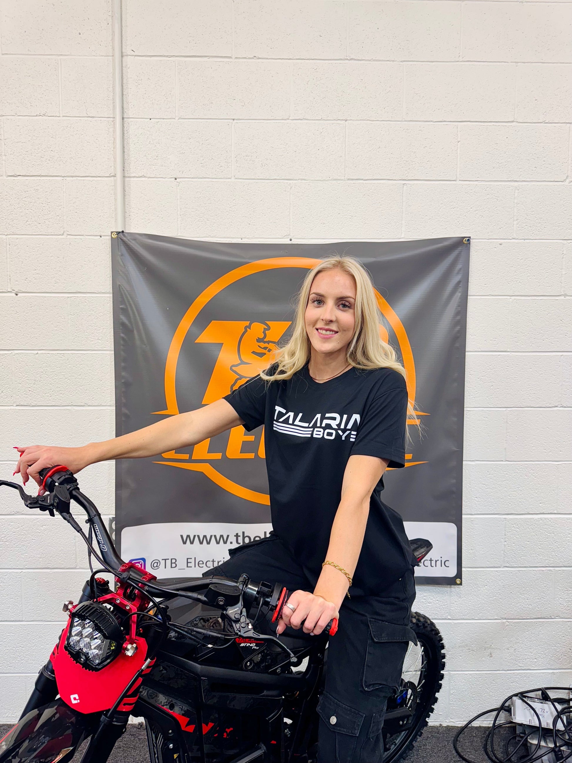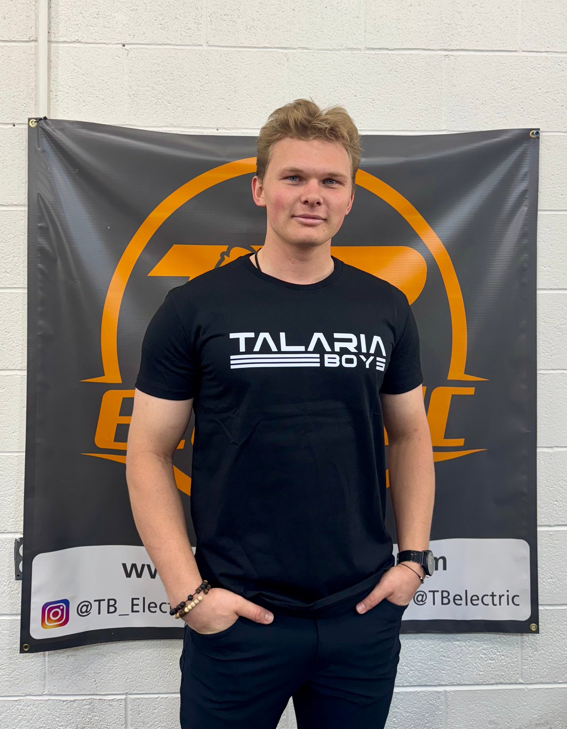 Unleash your inner trendsetter with the custom Talaria Boys T-shirt. Designed for those who ride with passion and style, this black tee features a striking white Talaria Boys logo that stands out boldly. It offers unparalleled comfort for all-day wear. Whether you're hitting the streets or lounging with friends, this shirt ensures you look cool and feel relaxed. Join the movement and show your support for the Talaria Boys – where style meets comfort in every ride. Get yours now and ride in style!