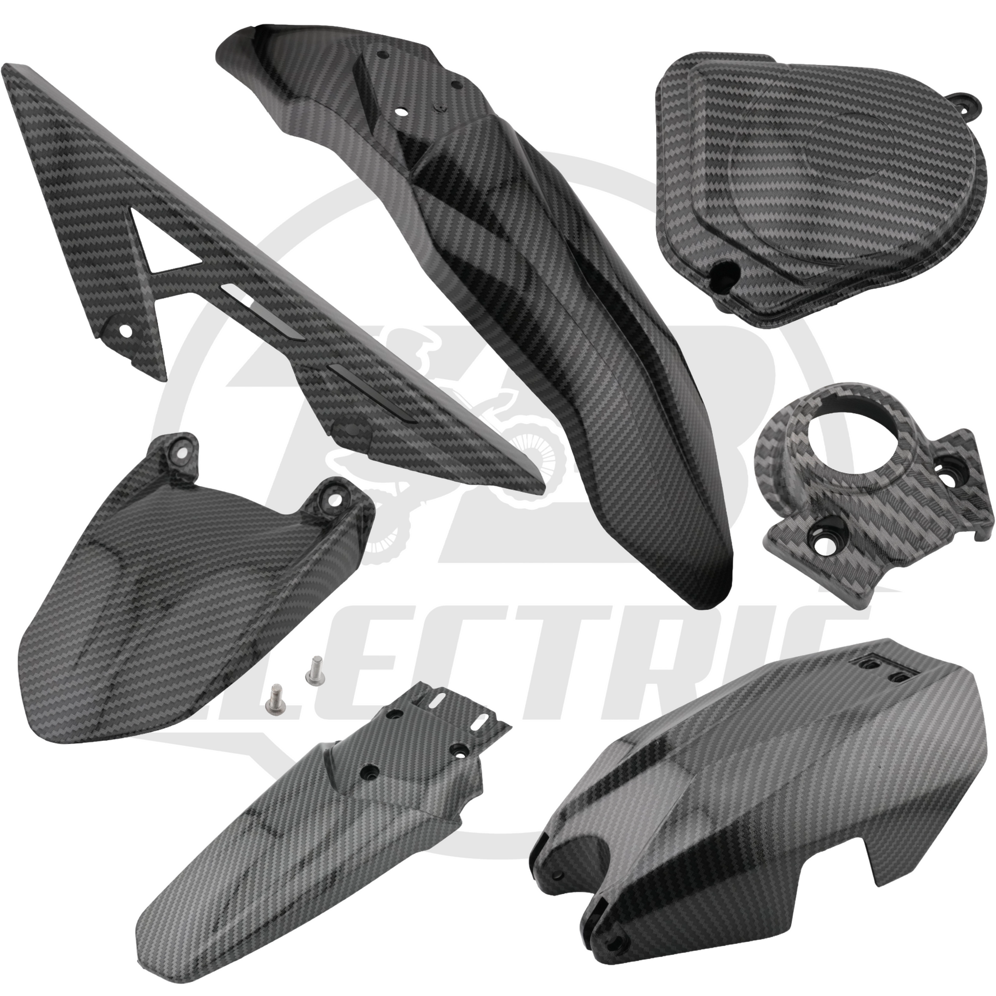 Upgrade your Talaria Sting MX3, MX4, or MX5 with our carbon fiber style plastics. While not real carbon fiber, these pieces feature a high-gloss carbon weave finish that delivers a premium, race-inspired look without the high price tag of genuine carbon.
