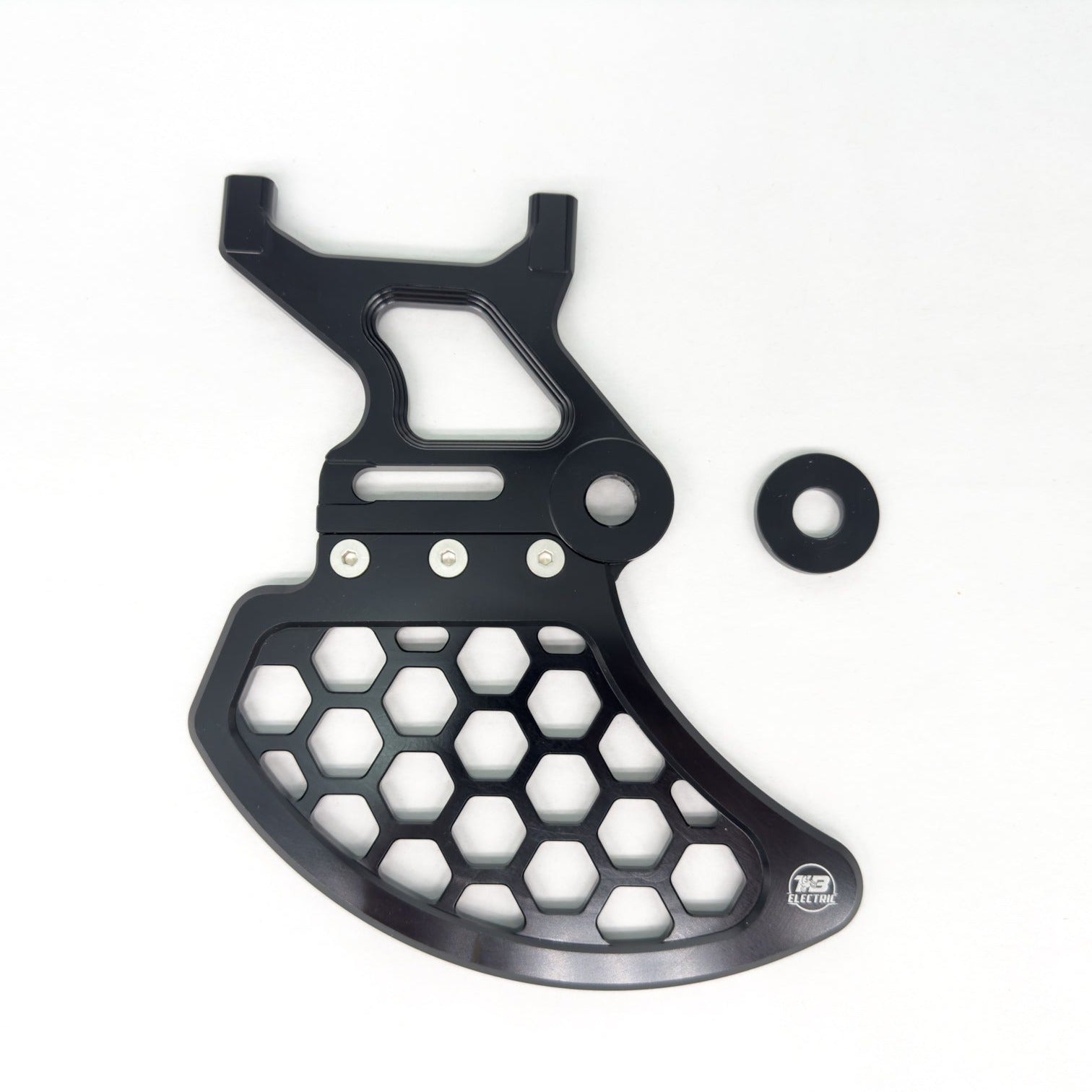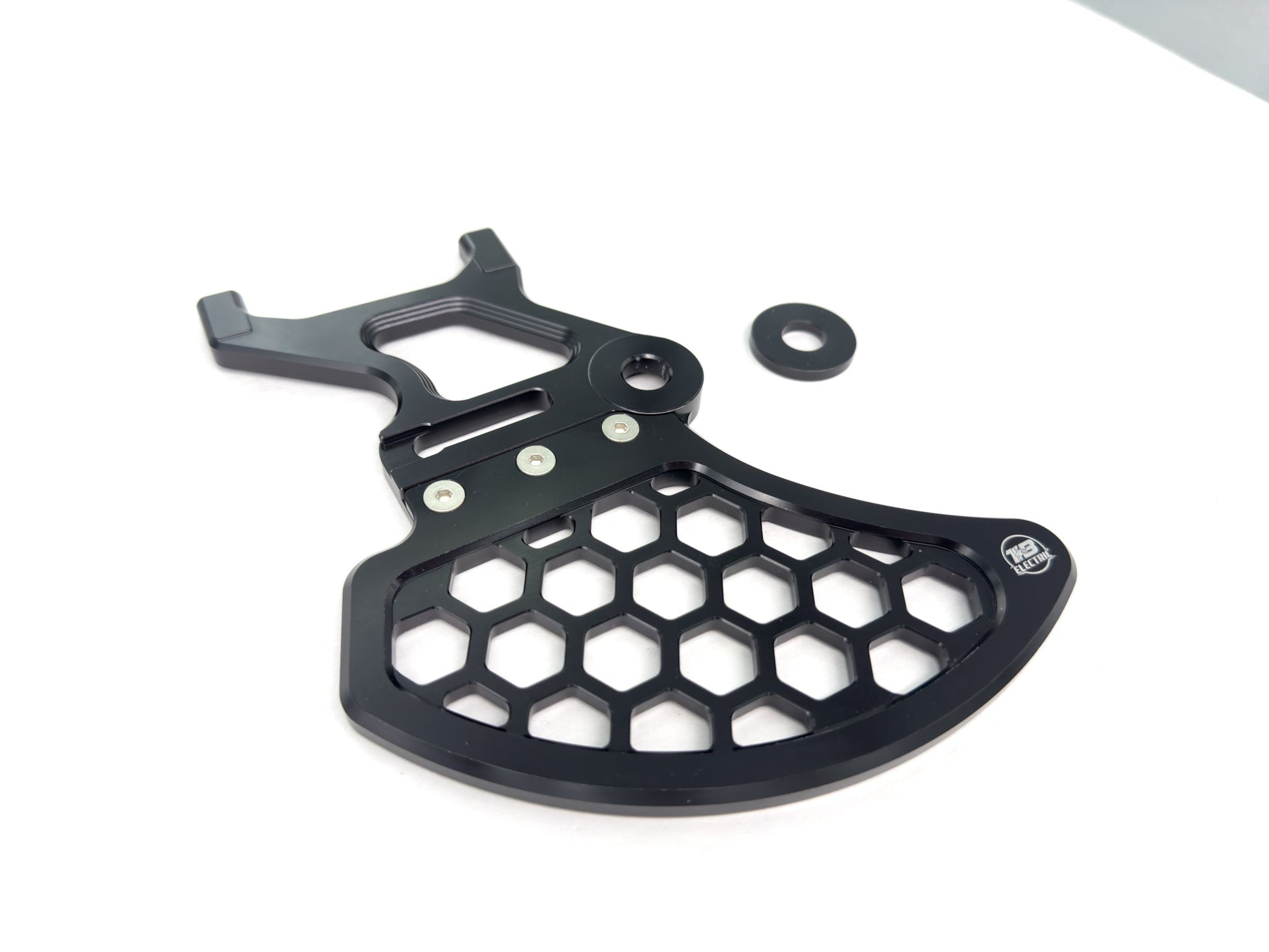- Premium Construction: Built from top-grade materials, the TB Electric Rotor Guard offers exceptional strength and longevity, ensuring your bike’s brake rotor is shielded from impact and damage caused by rocks and other road debris.