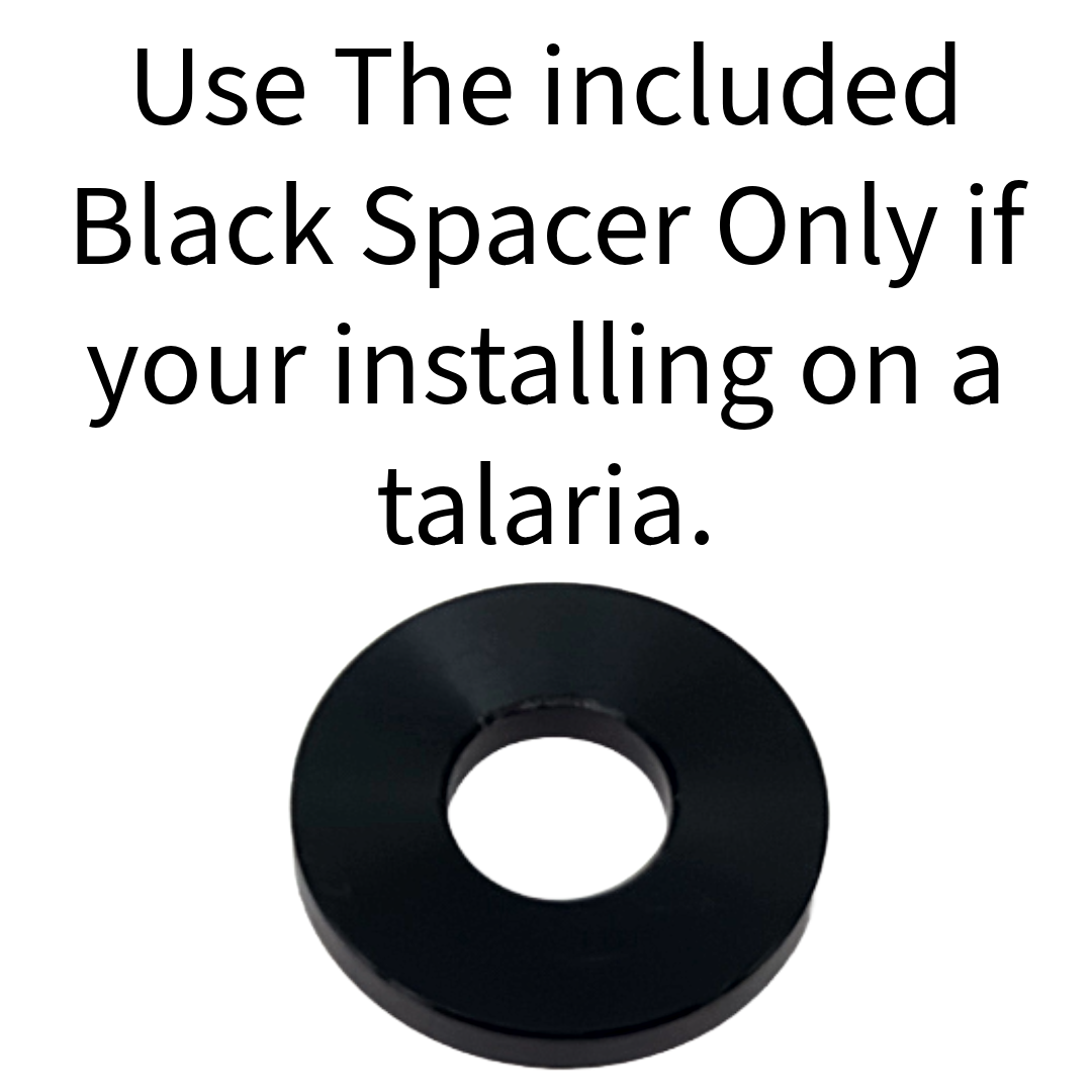 - For Talaria Sting MX3, Talaria Sting MX4, and Talaria XXX models, use the included black axle spacer to ensure a perfect fit.