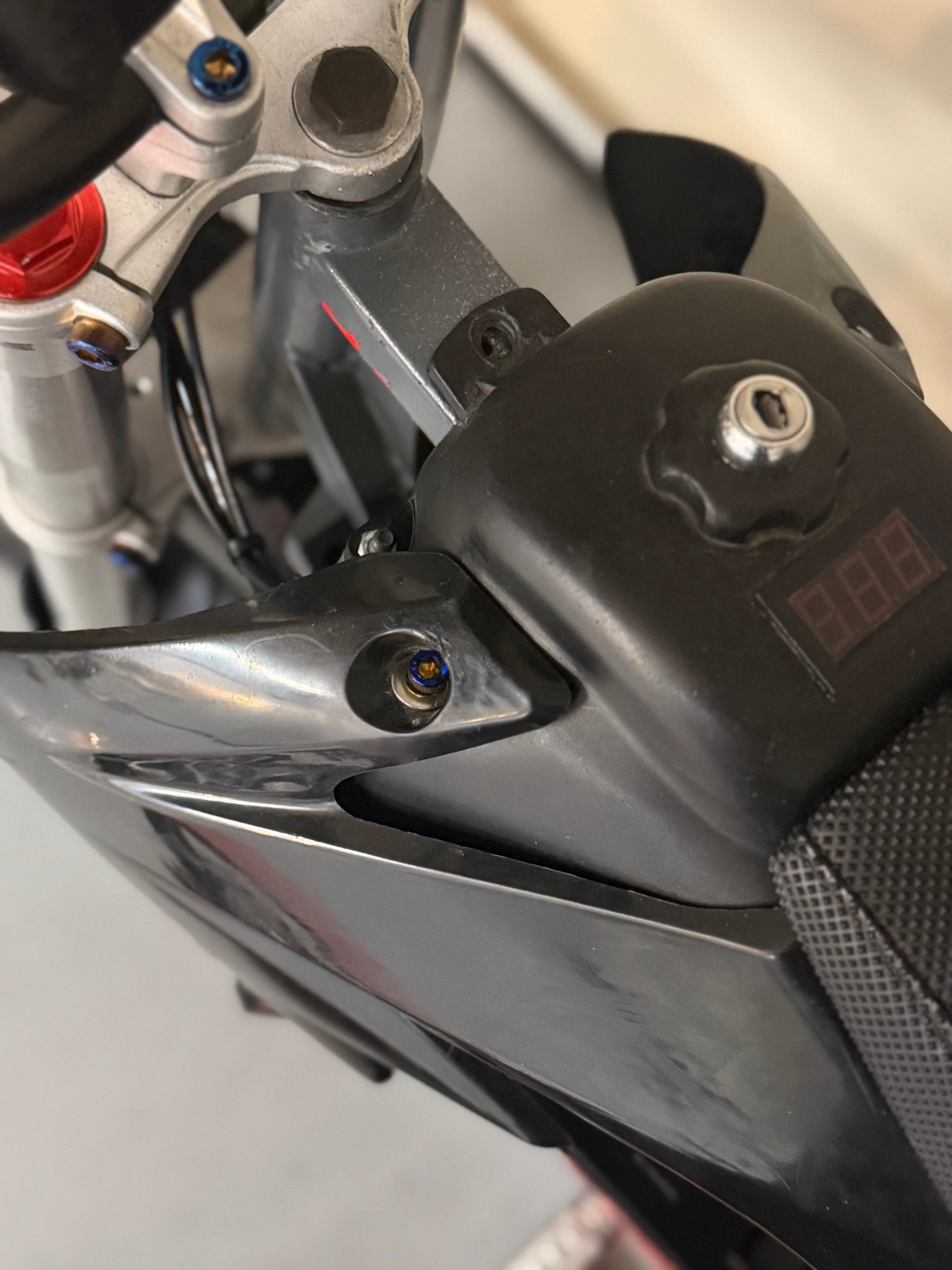 Upgrade your stock, rusty, stripped gas tank bolts to our high quality, lightweight, durable titanium bolts! Enhance the looks of your bike while also going for a more reliable option!