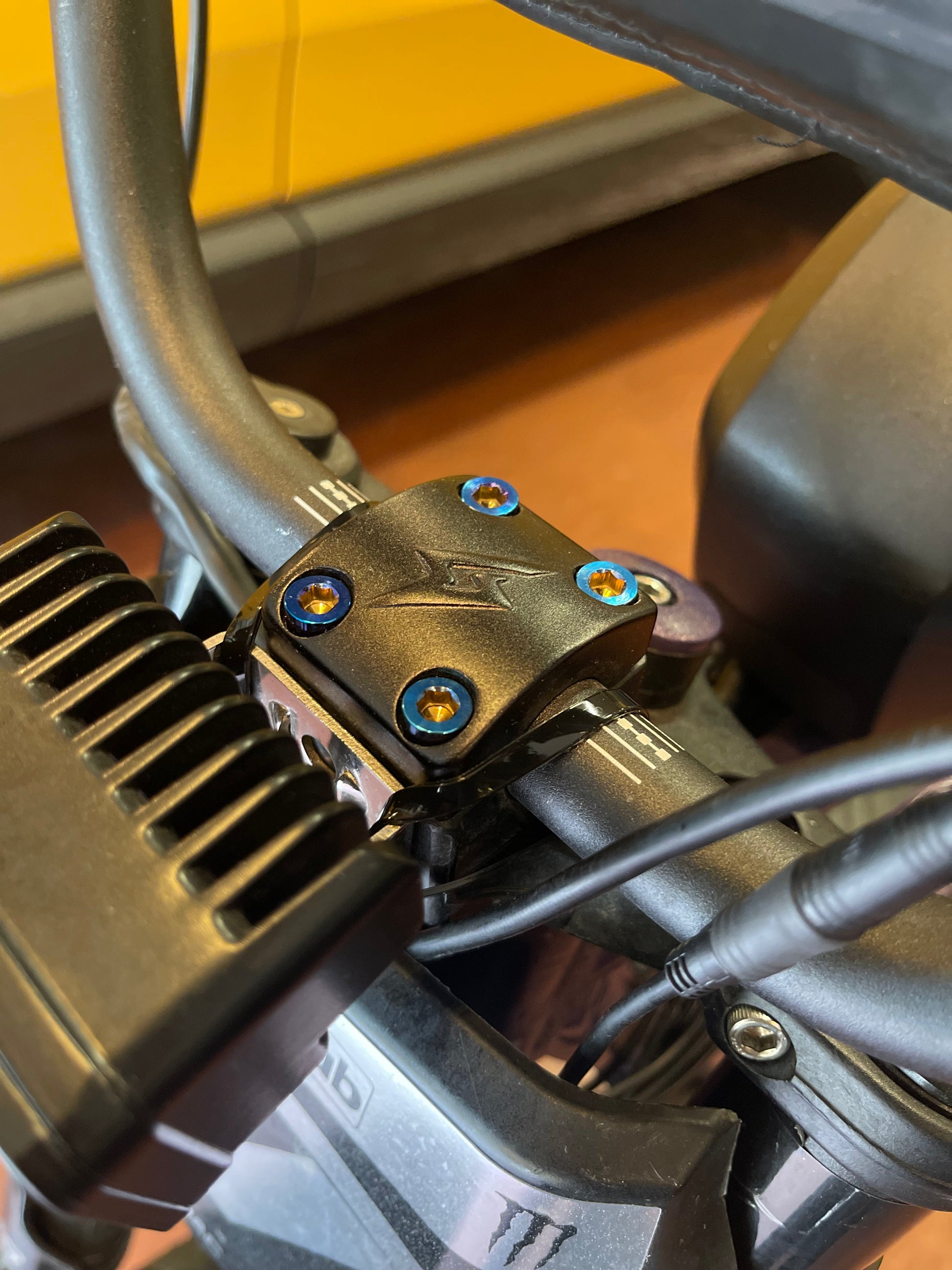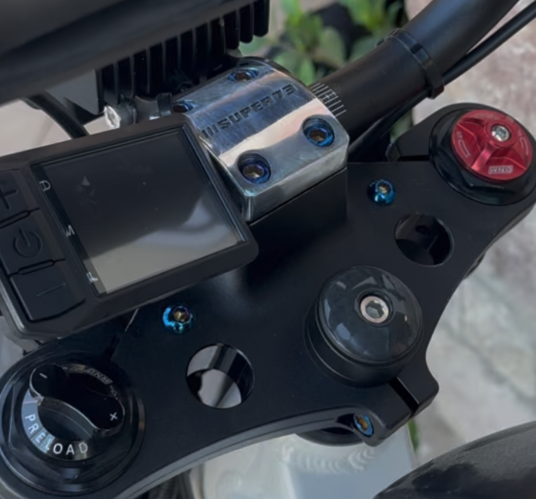Full titanium burnt blue bolt set for Super73. Includes 11 fork and wheel clamp bolts, 4 handlebar mount bolts, and 2 caliper bolts. Will ship out in 1-2 days when inventory arrives.