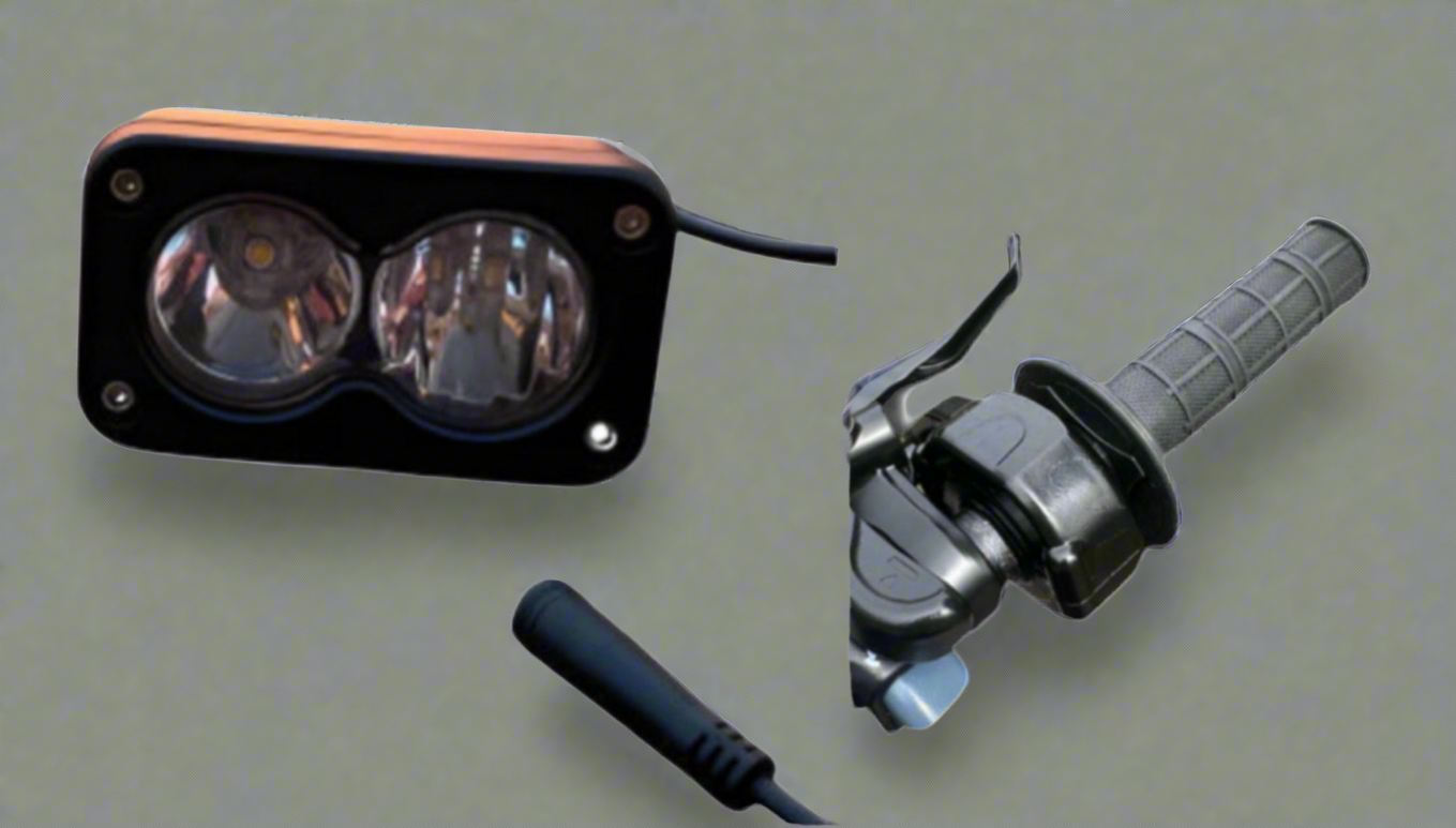 This MXwraps bundle includes the surron throttle and Baja light, both featuring 3p female and male connectors for easy installation. Increase your bike's performance with these high-quality components.